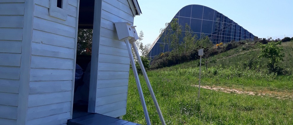 A intervención artística Birdwatching para Reb/veladas na paisaxe parte da sinxela estrutura dos observatorios de paxaros explorando o valor da cabana tanto como refuxio como dispositivo expositivo. A instalación explora ademais a idea de caseta ou cabana desde a intención de construír unha estrutura auxiliar no marco dun contexto arquitectónico monumental. Partindo deste tipo de habitáculos anexos de uso doméstico -moi habituais en Galicia- preténdese establecer un cambio de escala, acoutando un espazo pequeno dentro do macro complexo arquitectónico de Peter Eisenman.