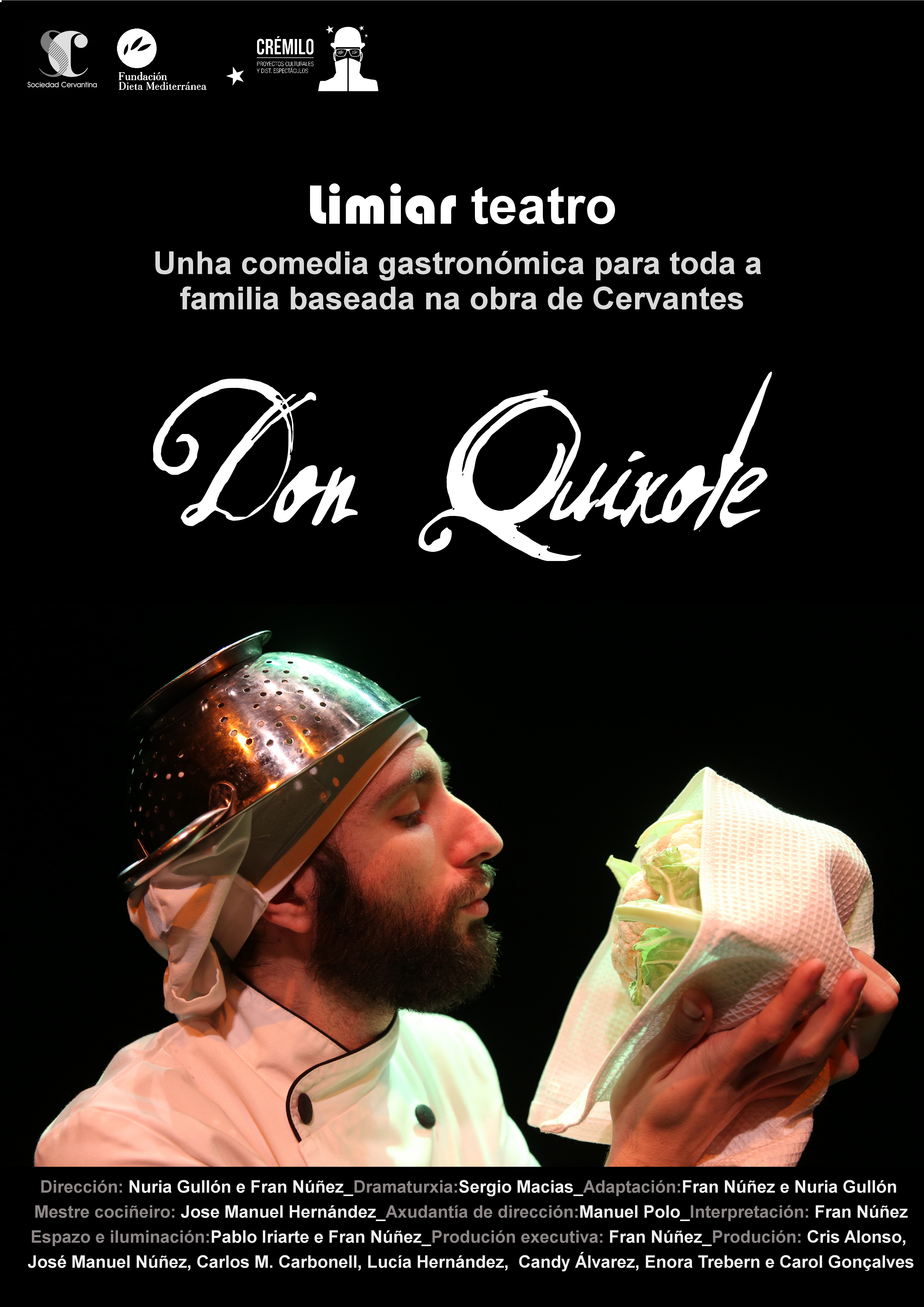 A Biblioteca de Galicia conmemora os 400 anos da morte de Miguel de Cervantes cunha obra teatral coa que achegarlle a todos os públicos o seu personaxe máis universal: Don Quixote. Así, Limiar Teatro porá en escena unha comedia gastronómica que mestura narración oral, manipulación de obxectos e cociña en directo para dar lugar a esta exitosa versión gastronómica da obra de Cervantes.