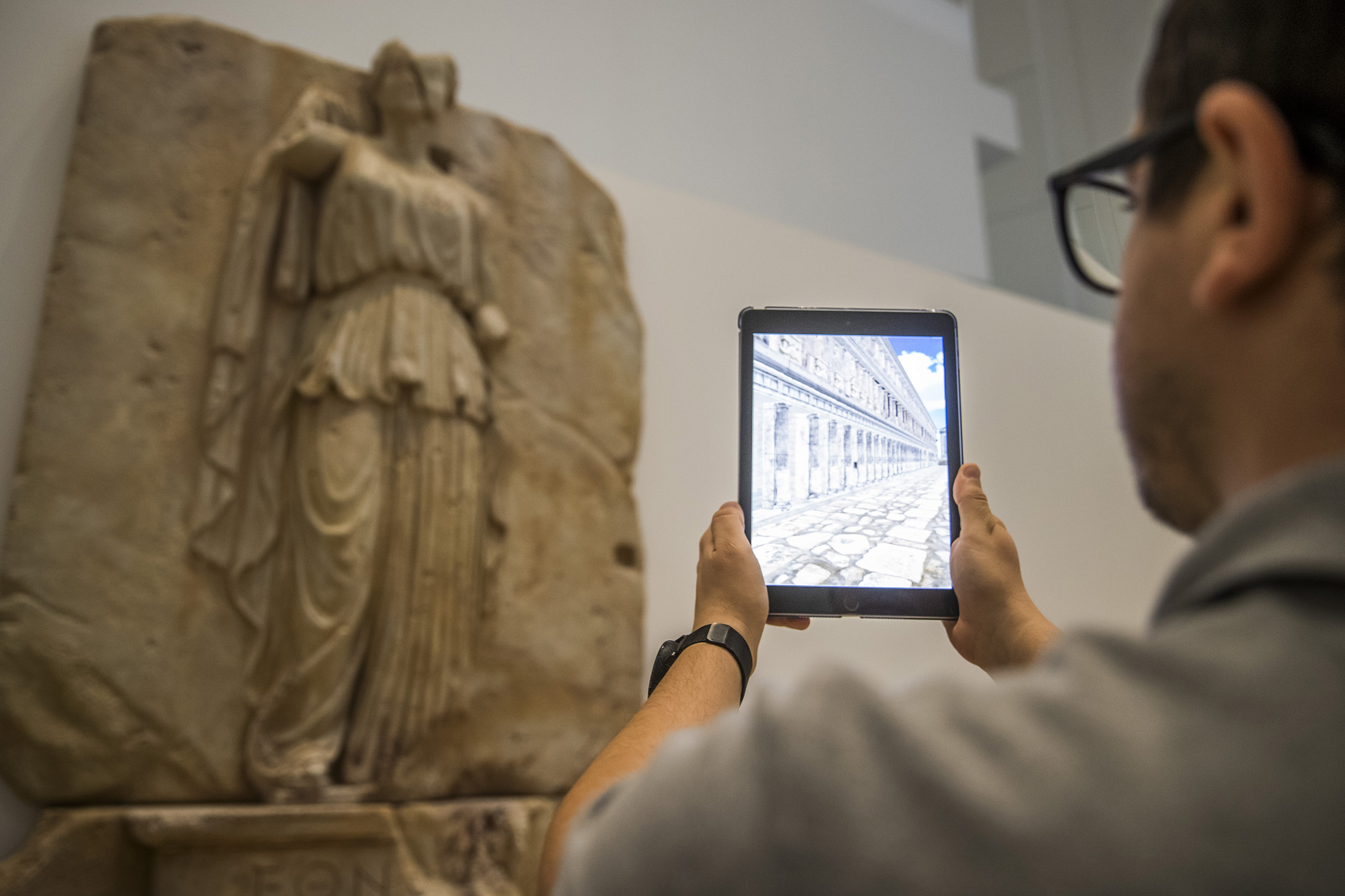A mostra permitirá tamén viaxar no tempo e no espazo ata o Sebasteion da cidade de Afrodisias, na Turquía occidental. Trátase dun monumental templo conmemorativo da memoria do primeiro emperador romano, Octavio Augusto, onde figura a inscrición máis distante que coñecemos referida ao pobo dos galaicos. A través de realidade aumentada, as persoas visitantes poderán interactuar cunha espectacular réplica a tamaño real da inscrición e, a través de tablets, erguer ao seu redor o templo tal e como se coñecía a finais do Imperio romano.