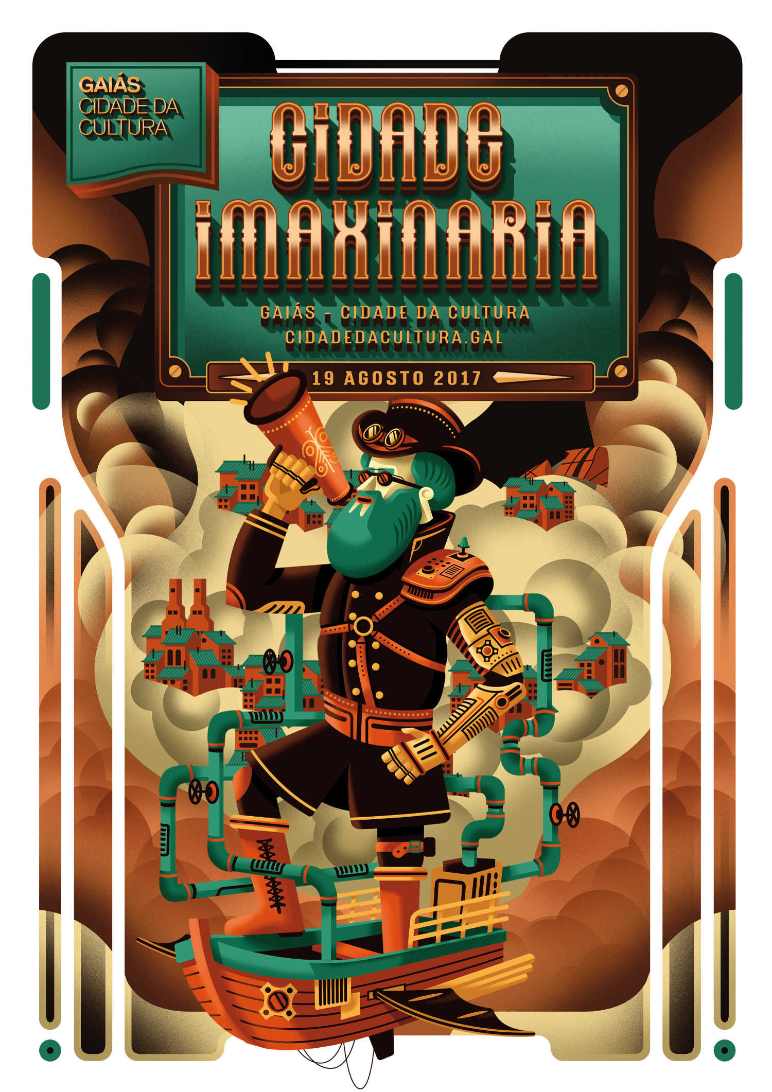 A Consellería de Cultura, Educación e Ordenación Universitaria convida as familias a gozar, un ano máis, dunha das citas xa clásicas do verán, Cidade Imaxinaria. Nesta sétima edición engalana as súas oito horas de espectáculos, xogos e obradoiros coa estética retrofuturista do steampunk para facerlles sentir a grandes e a pequenos protagonistas, na Cidade da Cultura de Galicia, de historias fantásticas como as dos relatos de Julio Verne, H.G. Wells ou Arthur Conan Doyle.